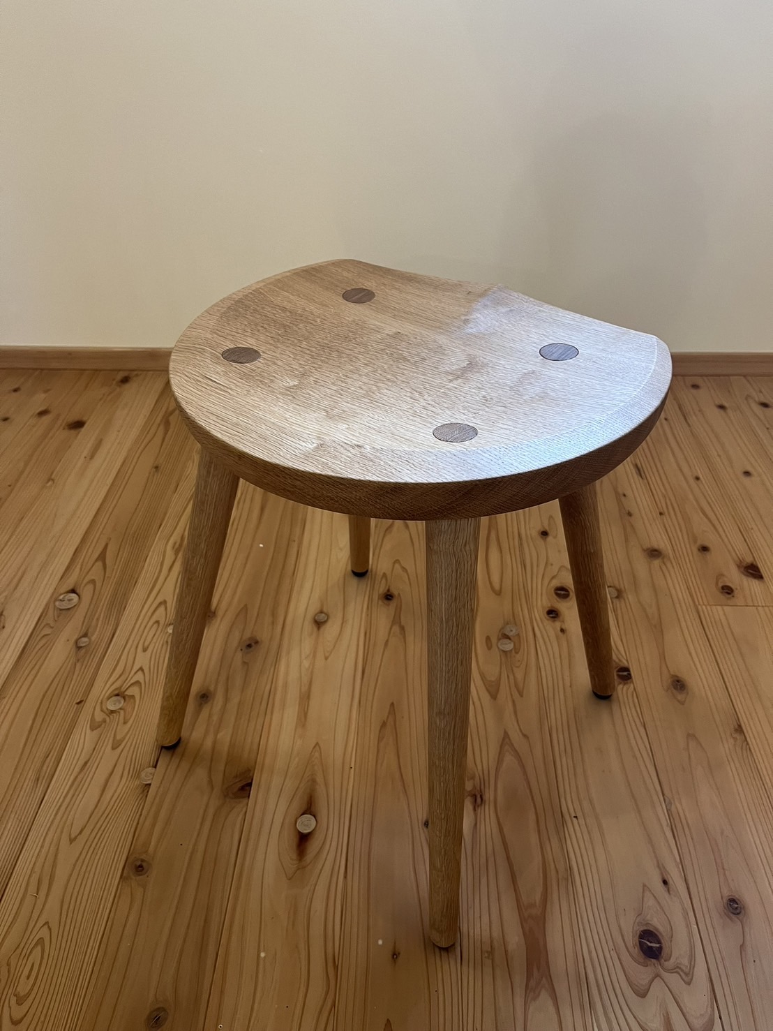 今回のスツールは、お客様とのやり取りのなかから新しいデザインが生まれたオーダーでした。実際にお使いいただく姿を思い描きながら作る時間は、とても楽しく学びの多いものでした。これからも日々の暮らしにそっと寄り添える家具をお届けできればと思います。